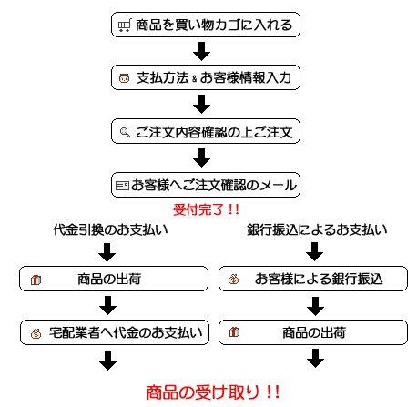 1) 入金確認後に商品を発送させていただきます。